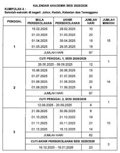 Takwim Persekolahan dan Cuti Penggal 2025/2026