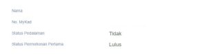 - Tidak Lulus: Ini bermaksud permohonan tidak memenuhi syarat kelayakan setelah semakan dan verifikasi dibuat oleh pihak berkuasa.