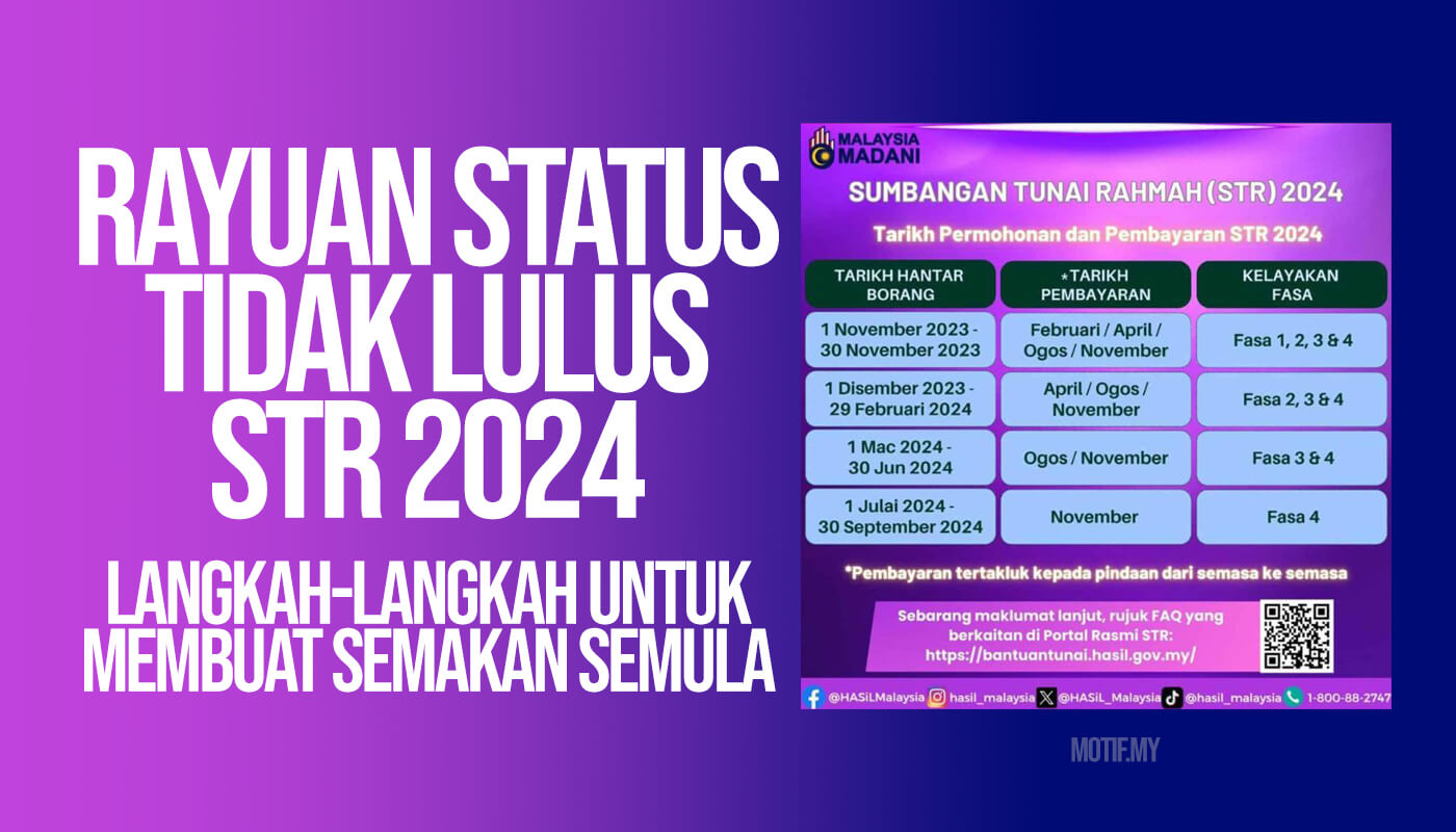 Menerima keputusan status Tidak Lulus untuk Sumbangan Tunai Rahmah (STR) 2024 boleh mengecewakan. Namun, sebagai pemohon, anda masih mempunyai peluang untuk membuat rayuan dan mendapatkan bantuan yang diperlukan. Dalam artikel ini, kami akan menerangkan langkah-langkah yang perlu diambil untuk memastikan rayuan anda berjaya. Di samping itu, kami akan memberikan panduan lengkap tentang proses rayuan STR 2024.